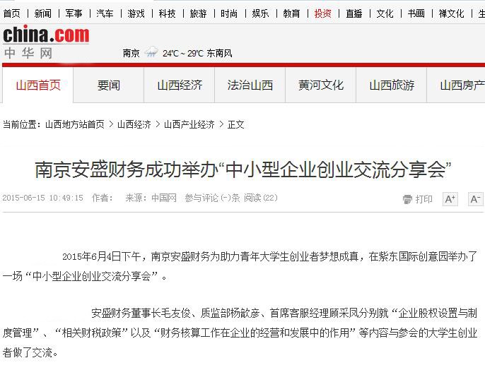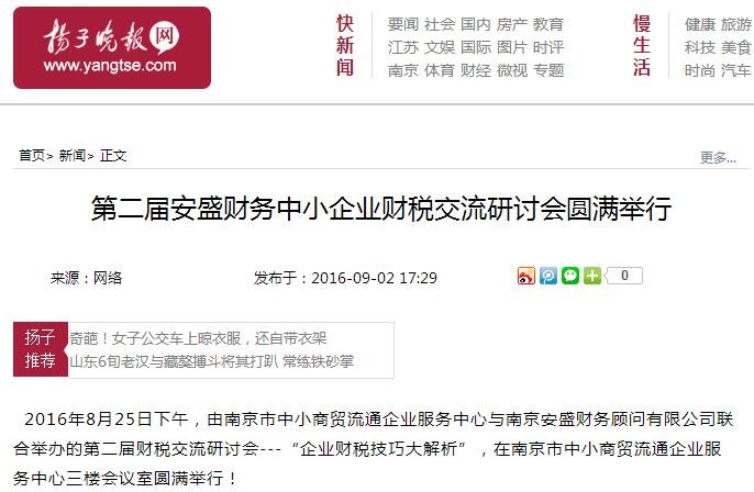 南京日報、龍虎網(wǎng)、中國會計網(wǎng)、會計圈、企業(yè)家日報、東方網(wǎng)、南京網(wǎng)、華龍網(wǎng)、江蘇省中小企業(yè)網(wǎng)等權(quán)威媒體聯(lián)合報道